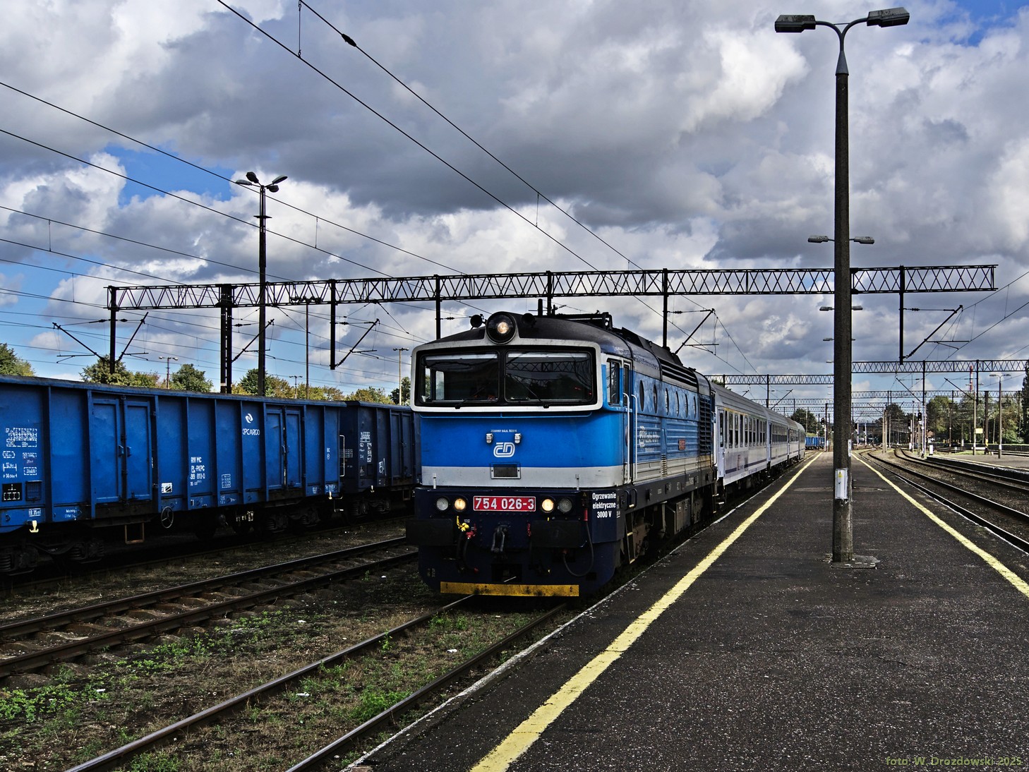 201E-408 w barwach CTL Rail odpoczywa na torze przy peronie 3. {2005-10-17}